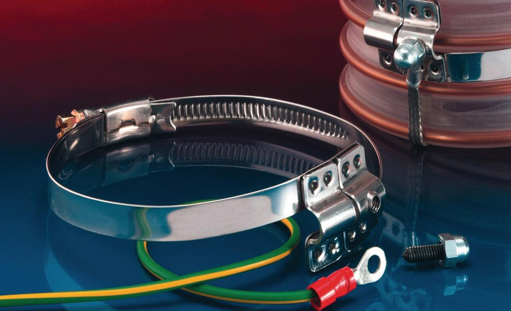 Brückenschelle mit integrierter Erdung zur Befestigung von außen gewellten Spiralschläuchen · Eigenschaften: Erden ohne Freilegen des Drahtes und Beschädigung des Schlauches · weitgehend dichte und zugfeste Verbindung durch spezielle Brückengeometrie · leicht und schnell montierbar · wiederverwendbar · RoHS konform ·