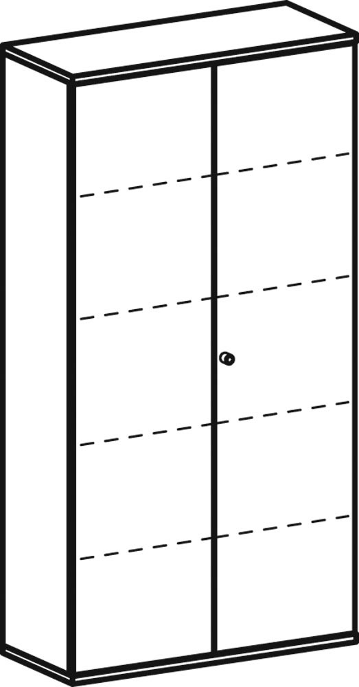 Büro-Flügeltürenschrank, BxTxH 1000x425x1920 mm, 5 OH, 4 Böden, Schloss, buche