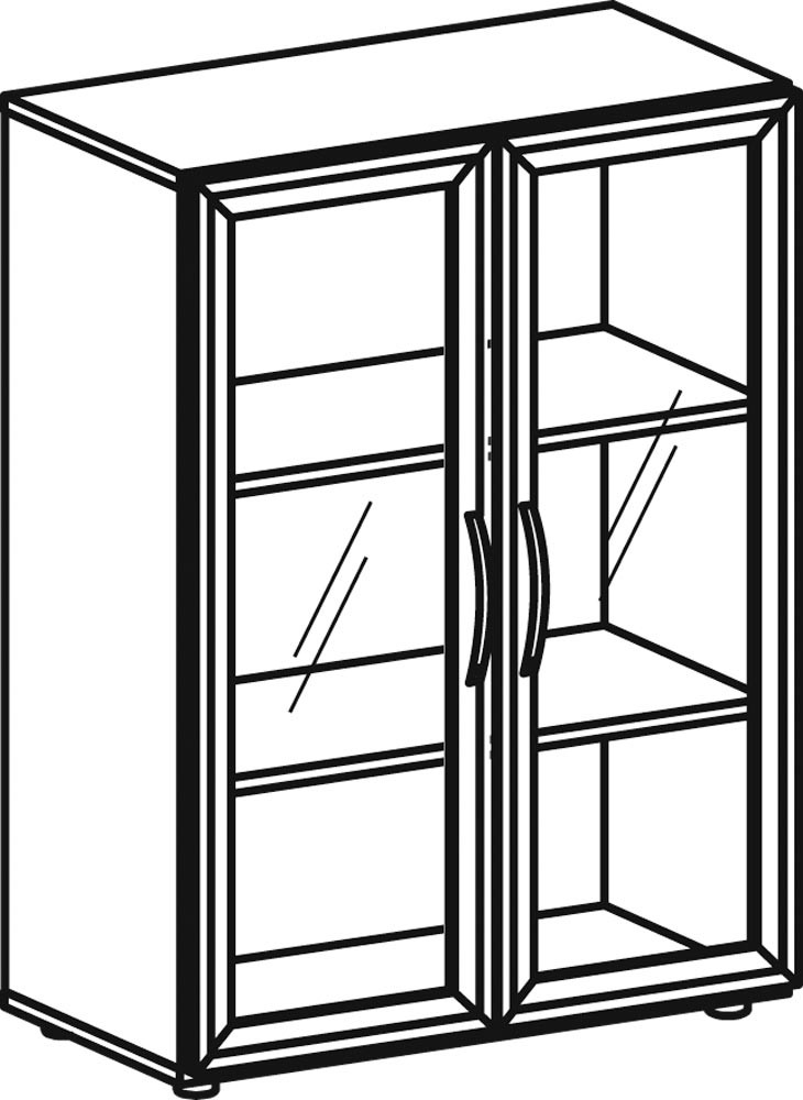 Büro-Flügeltürenschrank, BxTxH 800x420x1104 mm, 3 OH, 2 Böden, Glastüren, Justierfüße, buche