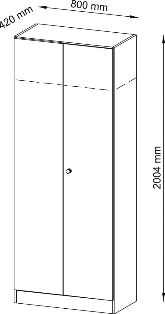 Büro-Flügeltürenschrank, BxTxH 800x420x2004 mm, 1 Boden, 1 Kleiderstange, Schloss, lichtgrau