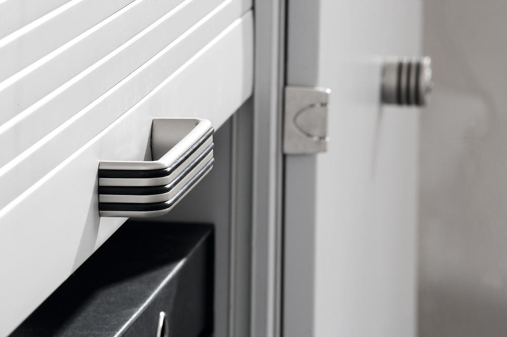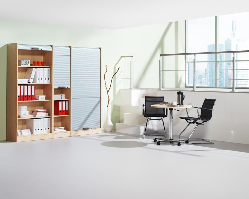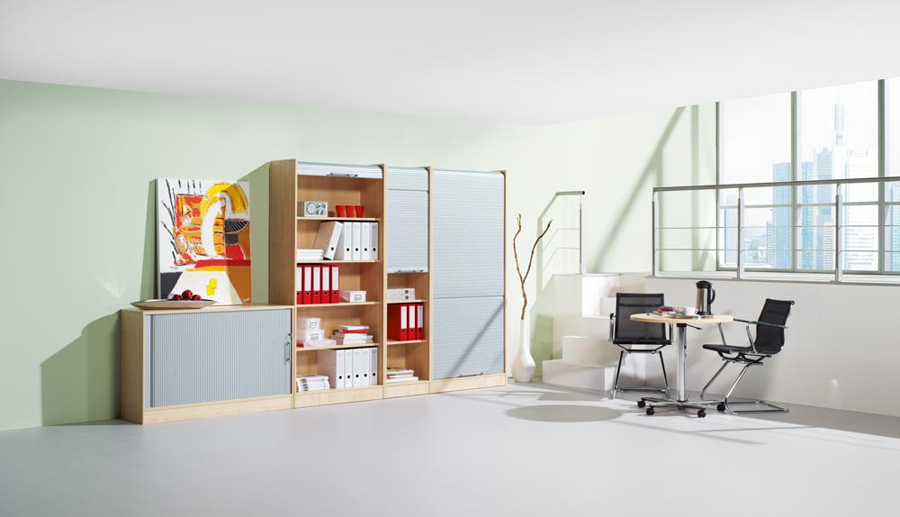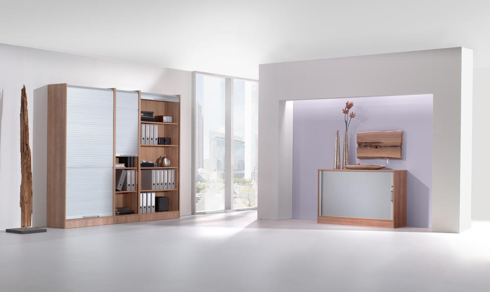 ∙ Die optimale Schranklösung bei beengten Raumverhältnissen · Vielfältige Unterbringungsmöglichkeiten ohne störende, in den Raum ragende Türen ∙ Korpus mit beidseitig melaminharzbeschichteten Oberflächen, blend- und reflexfrei, pflegeleicht und abriebfest ∙ Rollladenfront aus leichtlaufenden, PVC-freien Kunststofflamellen mit einem Gewichtsausgleich, der den Rollladen beim Öffnen und Schließen in jeder Position hält ∙ Querrollladenschrank einseitig nach links öffnend, Hochrollladenschränke nach oben öffnend ∙ Abschließbar mit Sicherheits-Zylinderschloss inkl. 2 Schlüsseln