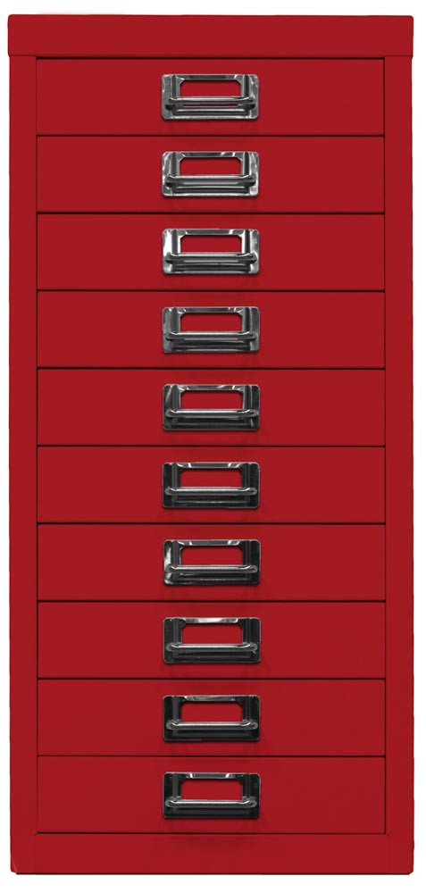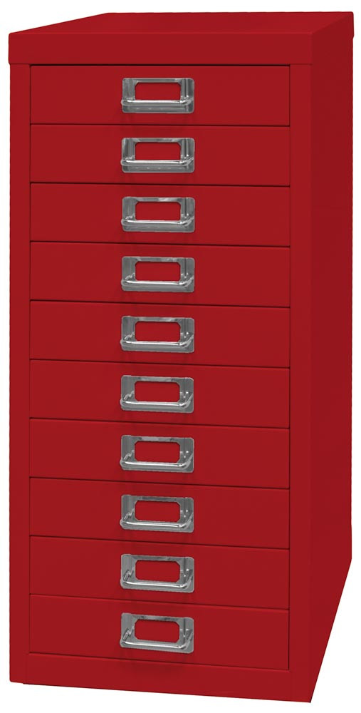 Büro-Schubladenschrank, BxTxH 279x380x590 mm, 10 Schubladen 51 mm, DIN A4, kardinalrot