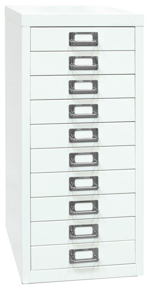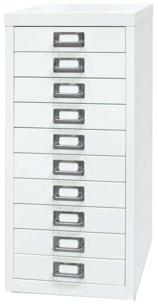 Büro-Schubladenschrank, BxTxH 279x380x590 mm, 10 Schubladen 51 mm, DIN A4, verkehrsweiß