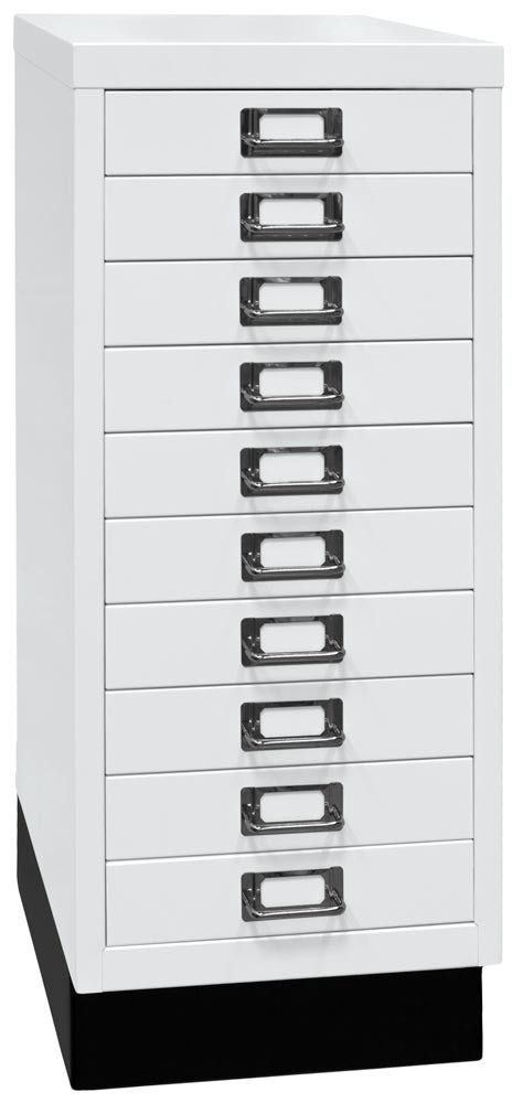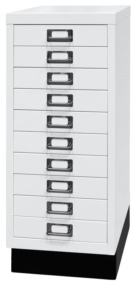Büro-Schubladenschrank, BxTxH 279x380x670 mm, 10 Schubladen 51 mm, DIN A4, Sockel 80 mm hoch, verkehrsweiß