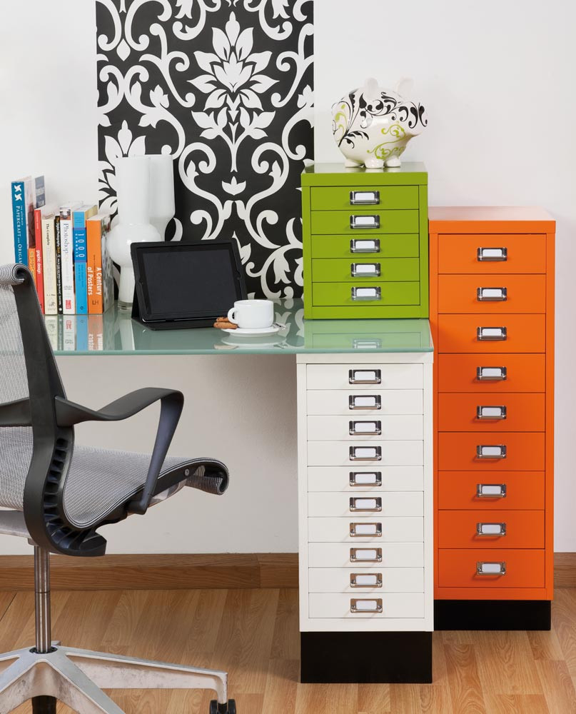 · Stabile und langlebige Schränke aus Stahl · Chrombeschichtete Griffe und Etikettenhalter · Schubladen mit Vollauszug (100 %) · Vielfältige Auswahl an Schubladeneinsätzen verfügbar