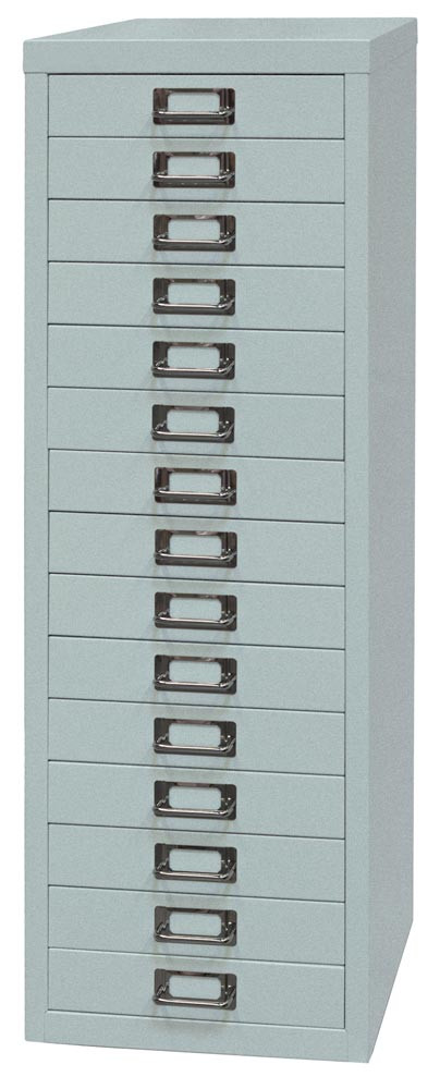 Büro-Schubladenschrank, BxTxH 279x380x860 mm, 15 Schubladen 51 mm, DIN A4, silber