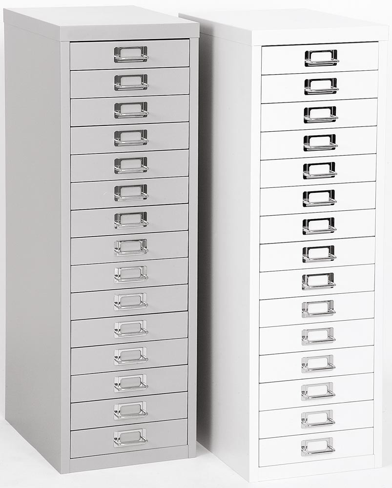 Büro-Schubladenschrank, BxTxH 279x380x860 mm, 15 Schubladen 51 mm, DIN A4, verkehrsweiß