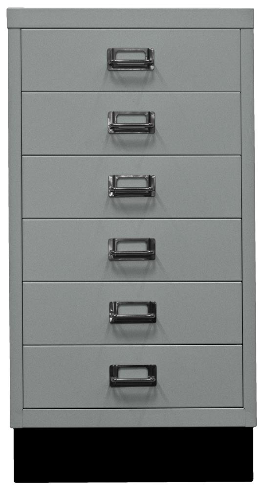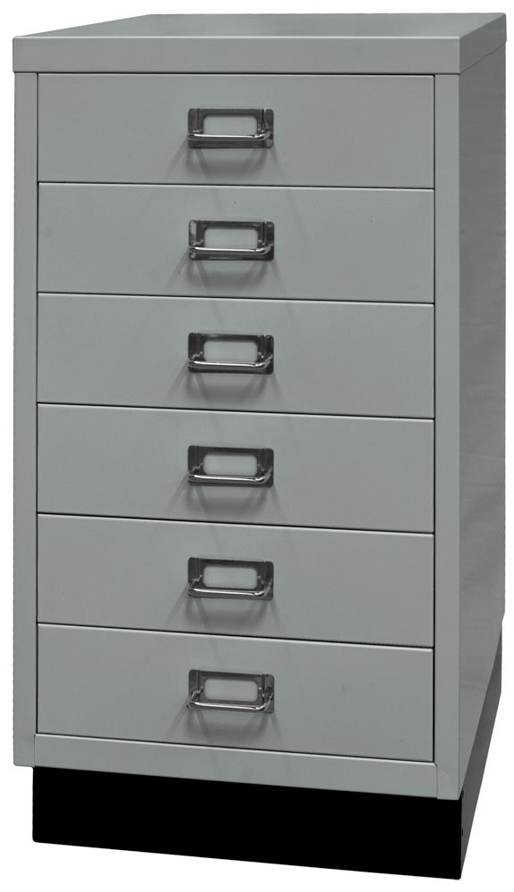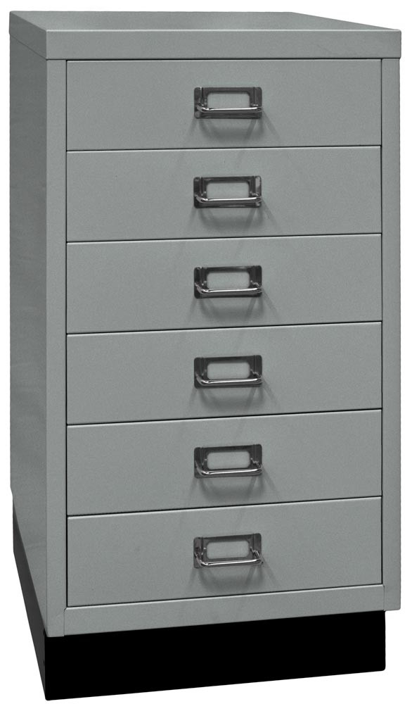 Büro-Schubladenschrank, BxTxH 349x432x670 mm, 6 Schubladen 87 mm, DIN A3, Sockel 80 mm hoch, silber