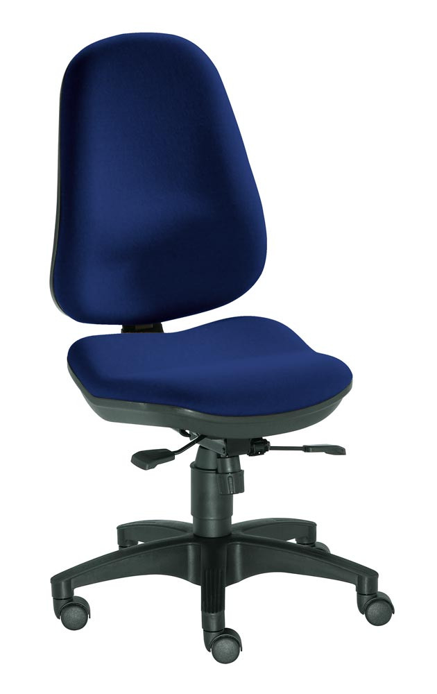 Bürodrehstuhl, Gr.S, Sitz-BxTxH 460x440x430-530 mm, Lehnenh. 560-610 mm, Punkt-Synchronm., Lendenwirbelstütze, Bandscheibensitz, Bezug dunkelblau E1986308