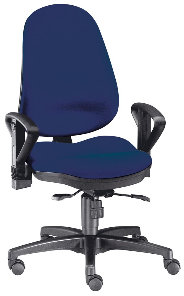 Bürodrehstuhl, Gr.XL, Sitz-BxTxH 460x440x430-530 mm, Lehnenh. 560-610 mm, Punkt-Synchronm., Lendenwirbelstütze, Bandscheibensitz, Bezug dunkelblau