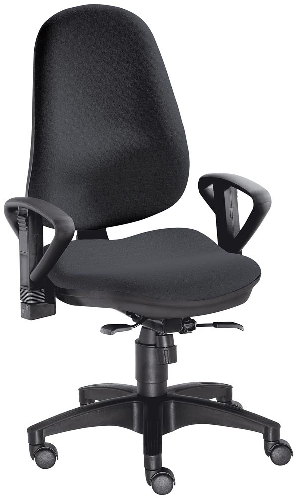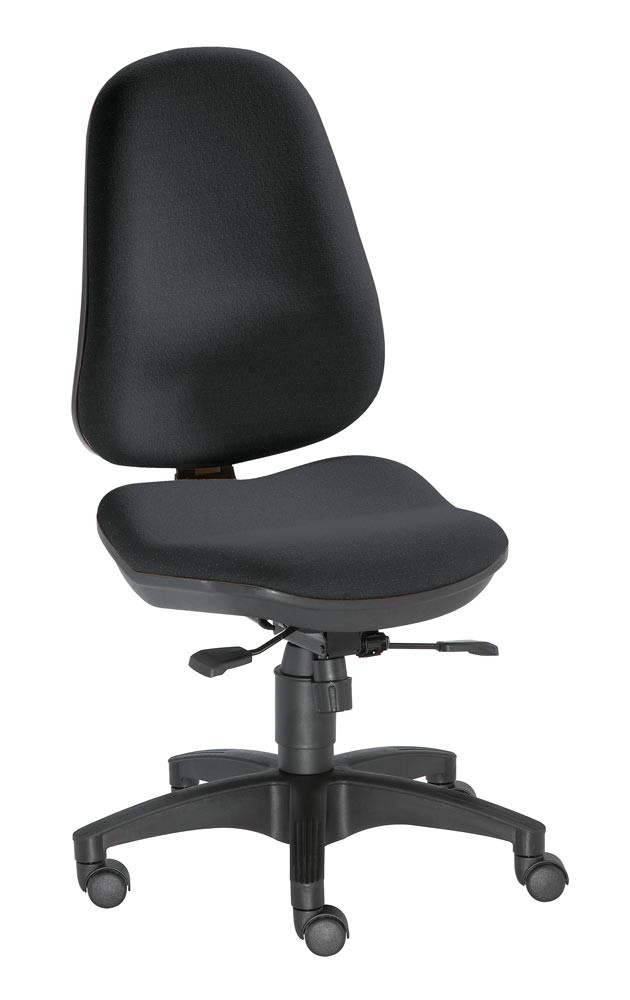 Bürodrehstuhl, Gr.XL, Sitz-BxTxH 460x440x430-530 mm, Lehnenh. 560-610 mm, Punkt-Synchronm., Lendenwirbelstütze, Bandscheibensitz, Bezug schwarz