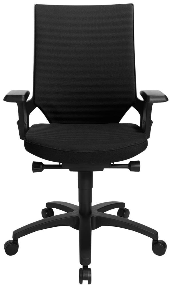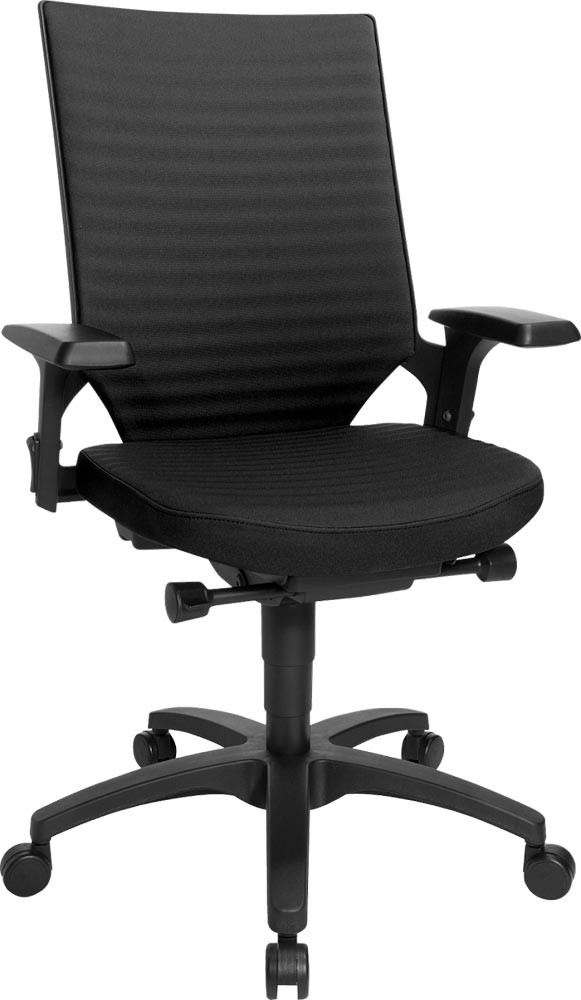 mit Auto-Synchron-Technik (mit Armlehnen) ∙ für überwiegend sitzende Tätigkeiten ∙ mit automatischer körpergewichtsabhängiger Federkrafteinstellung, in vorderster Position arretierbar ∙ synchrone Sitz- und Rückenlehnen-Neigung ∙ stabiles schwarzes Polyamidfußkreuz ∙ gepolsterte 3D-Rückenlehne mit stabilem Kunststoffrahmen ∙ höhenverstellbare Armlehnen ∙ ergonomisch geformter Muldensitz ∙ Bezug aus 100% strapazierfähigem Polyester ∙ Sitzfläche B 470 x T 430 mm ∙ Lehnenhöhe 560 mm ∙ Rollen für weichen Boden Lieferung erfolgt zerlegt