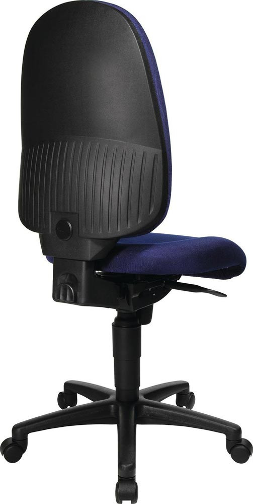mit Punkt-Synchronmechanik (ohne Armlehnen) · für überwiegend sitzende Tätigkeiten · stabiles Polyamid Fußkreuz in schwarz · individuell auf das Körpergewicht einstellbar und arretierbar · bequemer Bandscheibensitz zur optimalen Abstützung im Beckenbereich · Rückenlehne höhenverstellbar mit eingearbeiteter Lendenwirbelstütze · stufenlose Sitzhöhenverstellung · Bezug 100 % Polypropylen· Sitzfläche B 480 x T 480 mm · Lehnenhöhe 550 mm · Rollen für weiche Böden · Lieferung erfolgt zerlegtzerlegt