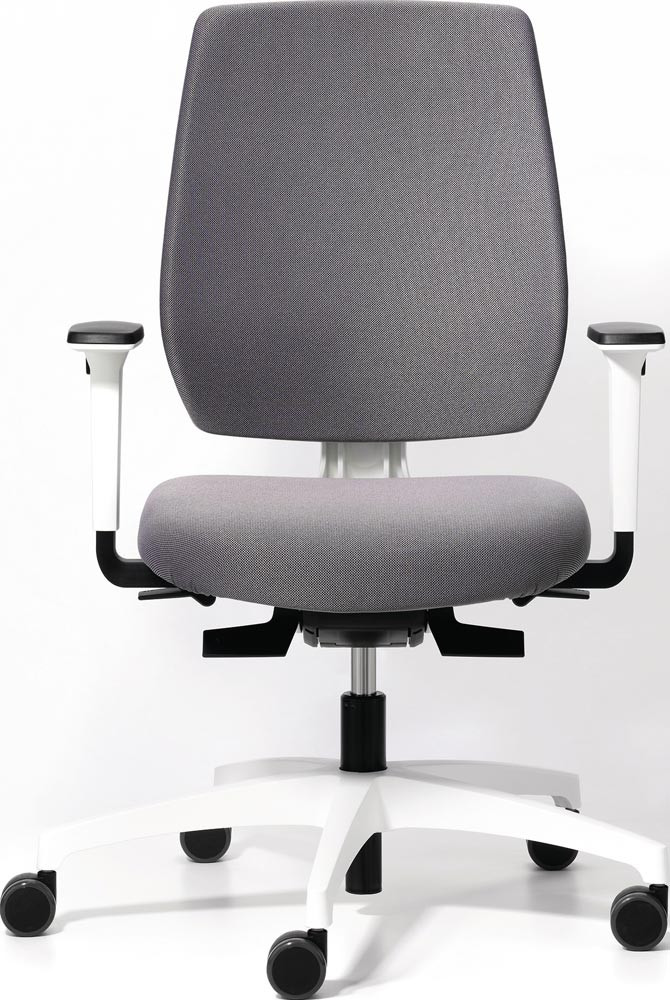 mit Synchrontechnik (mit Armlehnen) · für überwiegend sitzende Tätigkeiten · stabiles Kunststoff-Fußkreuz, schwarz · Rückenlehne mit Polsterauflage · der Rückengegendruck passt sich automatisch in jeder Sitzposition dem Körpergewicht an, mit integrierter Sitzneigung (-3°) · Sitztiefenverstellung 50 mm mittels Schiebesitz · Armlehnen höhenverstellbar, mit PU-Auflage · Sitzbezug 100 % Polyester · Sitzfläche B 490 x T 400-450 mm · Lehnenhöhe 580 - 660 mm · Universalrollen für harte und weiche Böden