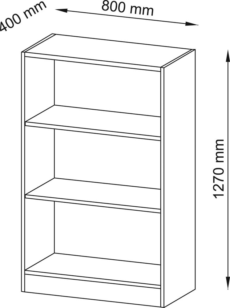 Büroregal, BxTxH 800x400x1270 mm, 3 OH, 2 Böden, buche