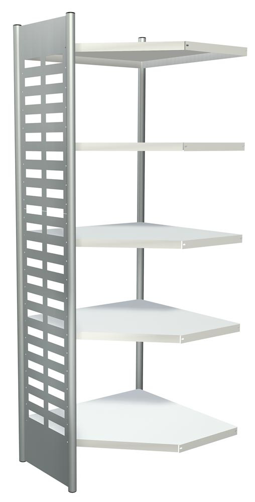 Büroregal, Eckfeld, BxTxH 400x400x2200 mm, 5 Böden, alusilber/lichtgrau, OHNE Abschlussrahmen