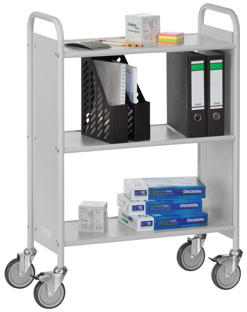 Bürowagen, 3 Böden, Seitenwände, LxBxH 810x385x1100 mm, Traglast 150 kg, lichtgrau/hellgrau