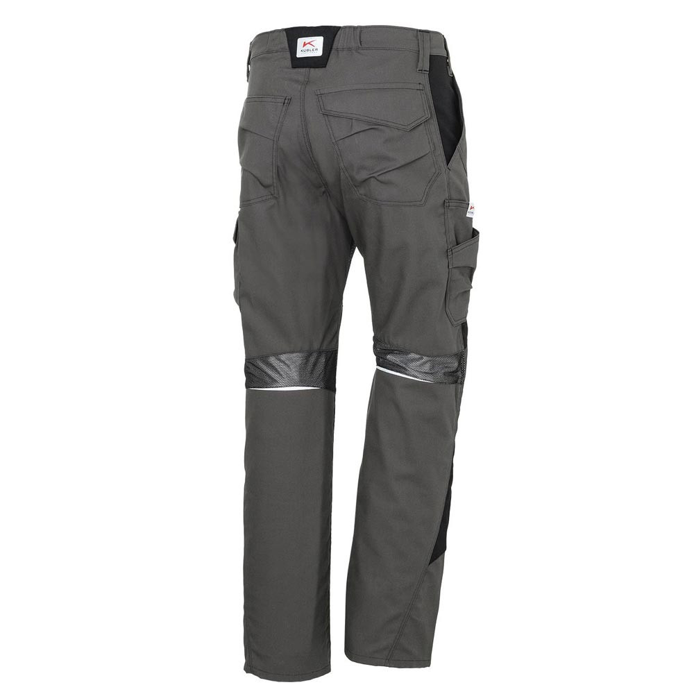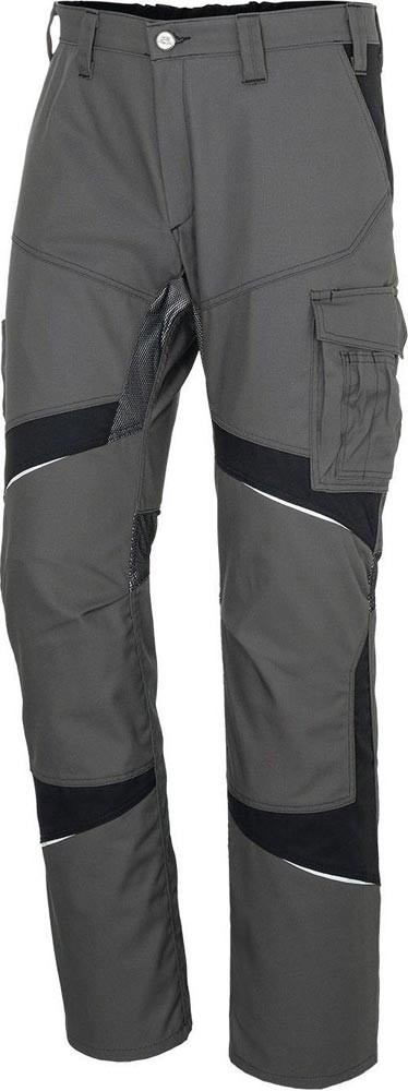 65% Polyester / 35% Baumwolle, ca. 270 g/m² · Kontrast-Elemente: Seiteneinsatz, Gürtelschlaufe am Bund hinten · Ventilationsgewebe: Kniekehle, Schritt und innerer Oberschenkel · 2 Seitentaschen · 2 Gesäßtaschen, rechts mit Patte und Druckknopf · rechts: ergonomisch positionierte Meterstabtasche auf Seitennaht · links: Schenkeltasche mit Patte und Druckknopf, aufgesetzte Stifttasche, integrierte Smartphonetasche · elastischer Bundeinsatz · Schlitz mit Reißverschluss · vorgeformtes Knie mit Bewegungszone · Ventilationseinsatz in der Kniekehle und im Schritt für optimalen Temperaturausgleich