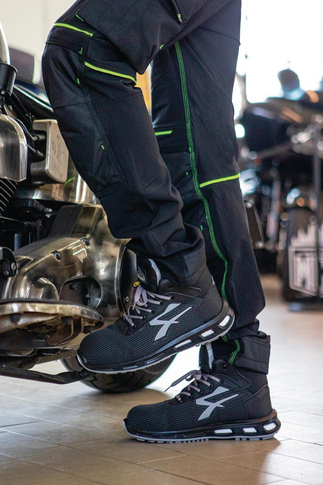 90% Nylon / 10% Elastan, ca. 260 g/m² · 4-Wege-Stretch, sehr strapazierfähig, bequem und weich · wasserabweisend, schmutzabweisend, atmungsaktiv und schnelltrocknend · zwei große Fronttaschen · elastischer Bund mit innovativem, versenkbarem Verstellsystem · hochgezogener Lendenschutz · Reflexprofile vorne und hinten sowie rotes Reflexband an der hinteren Gürtelschlaufe · multifunktionale Seitentasche für Werkzeug mit herausziehbarem Ausweisfach · zwei Gesäßtaschen, eine mit Patte und eine mit Sicherheitsklettverschluss · zwei Kniepolstertaschen mit einfachem Einschub und Stoßborte