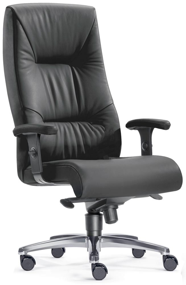 Chefsessel Big, Größe XL, Sitz-BxTxH 550x500x420-530 mm, Lehnenh. 750 mm, Synchronm., TL 150 kg, Armlehnen, Alu-Fußkreuz, Lederbezug schwarz