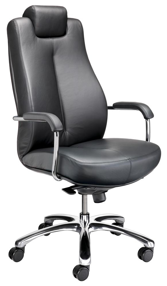 Chefsessel/Leitstellenstuhl, Sitz-BxTxH 540x510x460-550 mm, Traglast 150 kg, feste Kopfstütze, Bezug Softleder (Frontleder), schwarz