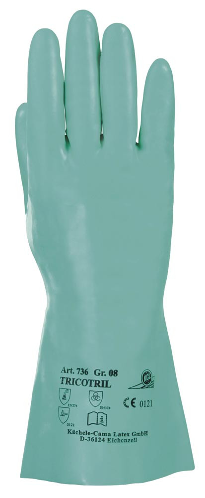 Chemikalienhandschuhe Tricotril 736 Größe 10 grün EN 388, EN 374 PSA-Kategorie III