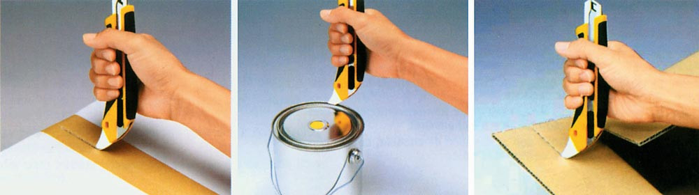 mit Metallführung, Antirutsch-Gummigriffeinlage und praktischem Verpackungs- und Farbdosenöffner · mit schwarzer Klinge bestückt / ultrascharf