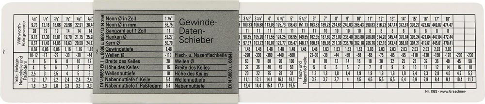 für metrisches ISO-(DIN 13), Whitworth-(DIN 11) · und Rohrgewinde (DIN 259) · Teilung schwarzgedruckt