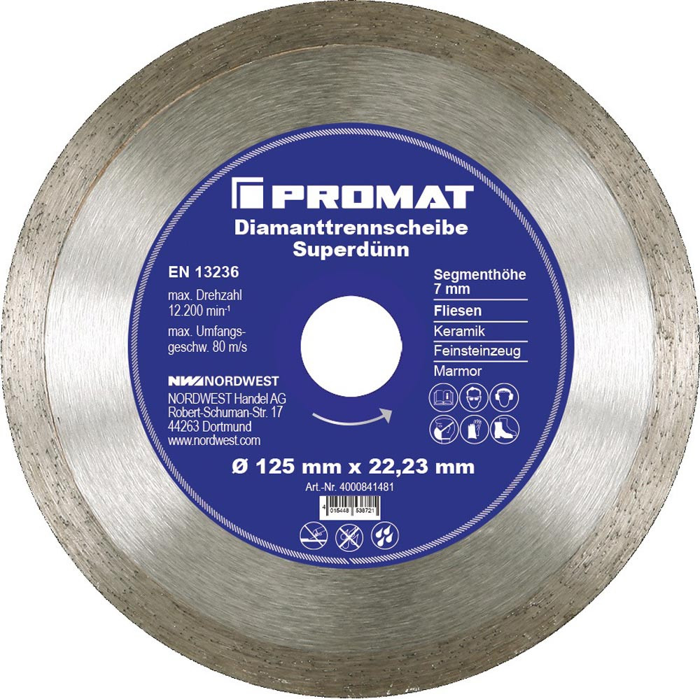 superdünn · Trockenschnitt · zum Trennen von Fliesen, Keramik, Feinsteinzeug und Marmorplatten · feine Schnitte · sehr saubere Schnittkanten · schneller Schnitt