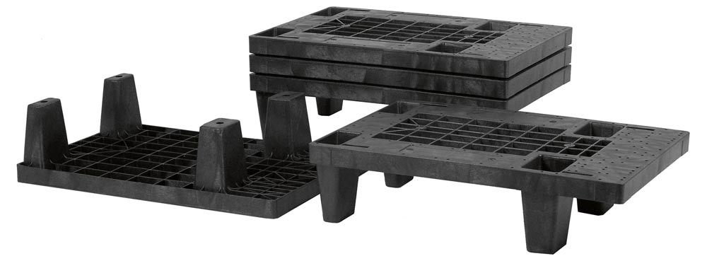 Displaypalette, BxTxH 600x800x155 mm, durchbrochen, 6 Füße, stapelbar, Recyl. Polyethylen, schwarz, ohne Rand, MINDESTABNAHME 2 Stück E821134