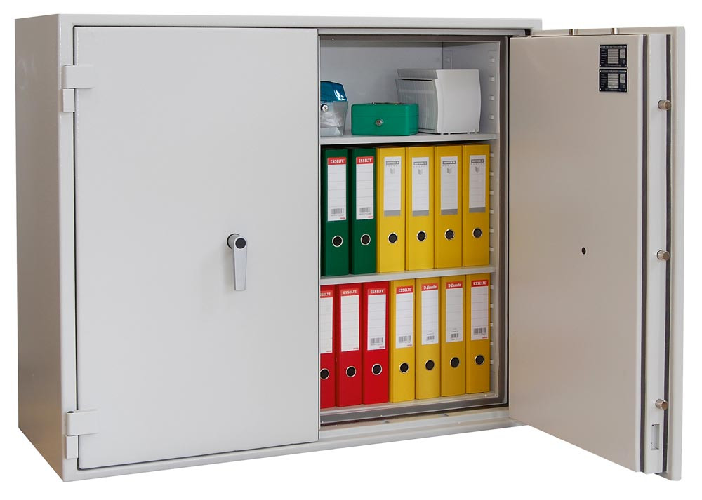 Dokumentenschrank, Sicherheitsstufe B + S2, S60P, BxTxH 975x459x1189 mm, Volumen 281 l, 2 Böden, Kapazität 33 Ordner, 2-türig, RAL 7035 lichtgrau E862434