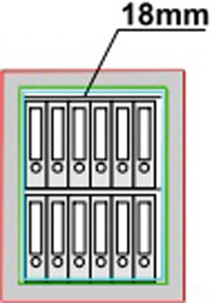 ∙ Korpus und Tür allseitig mehrwandig, Türstärke 100 mm mit allseitiger Bolzenverriegelung ∙ Beschläge und Scharniere 60 mm vorstehend ∙ Durch spezielle Füllungen und Dichtungen sind darin aufbewahrte Dokumente, Akten, Geld, etc. optimal vor Bränden und Löschwasser geschützt ∙ Die Schränke wurden an der TU Braunschweig erfolgreich einer Feuerwiderstand- und Sturzprüfung (Dauer 1 Stunde bis 1090 °C) unterzogen ∙ Doppelbart-Sicherheitsschloss inklusive zwei Schlüsseln ∙ Mit Bodenverankerung ∙ Lackierung in RAL 7035 lichtgrau ∙ Innentresore und Hänge-