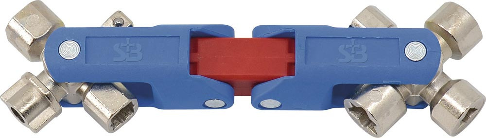 für alle gängigen Schließungen, Schaltschränke, Haupt- und Unterverteilungen, Abfallbehälter, Heizungsentlüftungen usw. · Schwenkarme um 360° drehbar · durch ein neu eingesetztes Gelenk, kann der Universalschlüssel sowohl als T-Griff mit hohem Drehmoment oder in der kompakten, zusammengesteckten Variante eingesetzt werden · Funktionen: