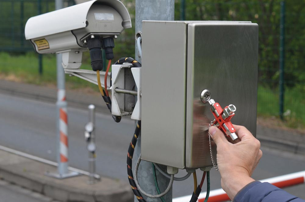 für fast alle technischen Schließungen z. B. in der Gas- und Wasserversorgung, Klima- und Belüftungstechnik, Revisionsklappen, Verriegelung bei Straßenlampen, Abfallbehälter, Müllcontainer usw. · aus Zinkdruckguss · mit Karabinerhaken an Kette · Funktionen:
