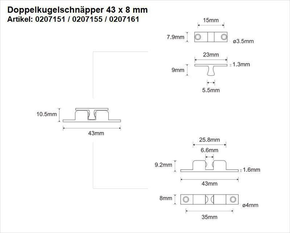Doppelkugelschnäpper Messing vernickelt 42 mm Kugeln und Federn aus Stahl E6500355