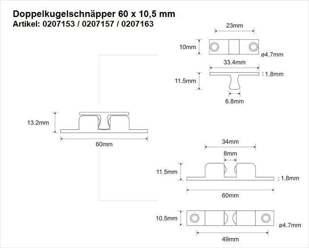 Doppelkugelschnäpper Messing vernickelt 42 mm Kugeln und Federn aus Stahl E6500355