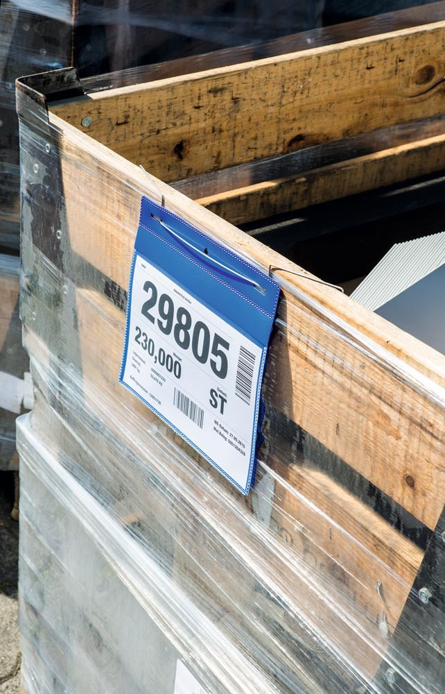 · Mit flexiblem, verzinkten Draht für eine leichte und sichere Befestigung · Für den Einsatz an Transportbehältern, Palettenkartons, Holzaufsatzrahmen und Gitterboxen · Scannertauglich und dokumentenecht · Rückenfolie und transparente Vorderfolie aus transparentem Polypropylen · Geeignet für den Außeneinsatz durch Staub- und Regenschutzklappe · Schneller Austausch der Einsteckschilder · VE 50 Stück