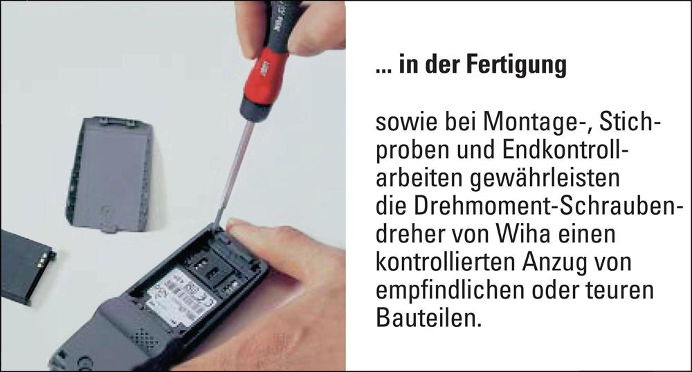 mit stufenlos einstellbarem Drehmoment und integrierter Fensterskala · numerische Anzeige des gewählten Drehmomentwertes · mit Mehrkomponentengriff · Klicksignal beim Erreichen des eingestellten Drehmomentwerts · Auslösegenauigkeit ± 6 % vom eingestellten Skalenwert