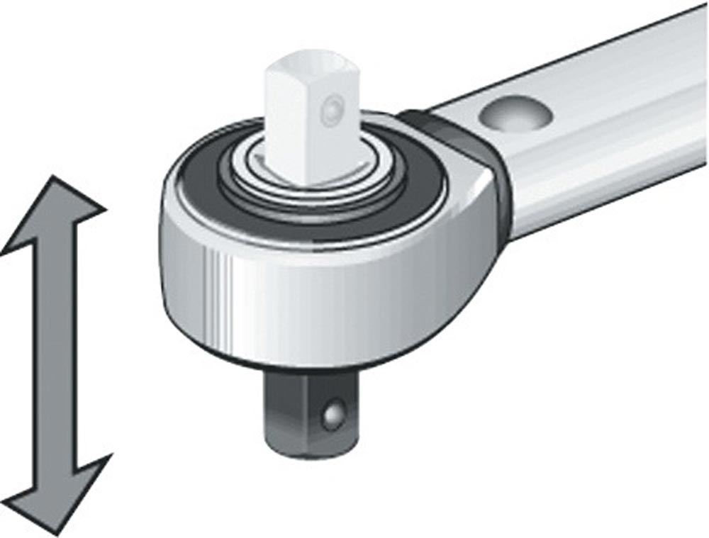 automatisch auslösend · aus pulverbeschichtetem, stabilem Stahlrohr für den kontrollierten Rechts- und Linksanzug mit integrierter Knarrenfunktion · die Knickmechanik mit Gleitrolle garantiert ein fühlbares und akustisches Auslösesignal · einfacher Richtungswechsel (einfach den Vierkant durch die Knarre drücken) · gut lesbare Doppelskala (N.m/lbf.ft.) unter einem Sichtfenster mit Lupeneffekt · justiert auf eine Auslösegenauigkeit von ± 3 % Toleranz vom eingestellten Skalenwert