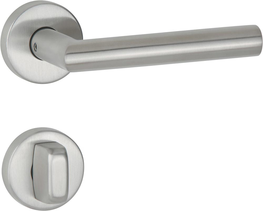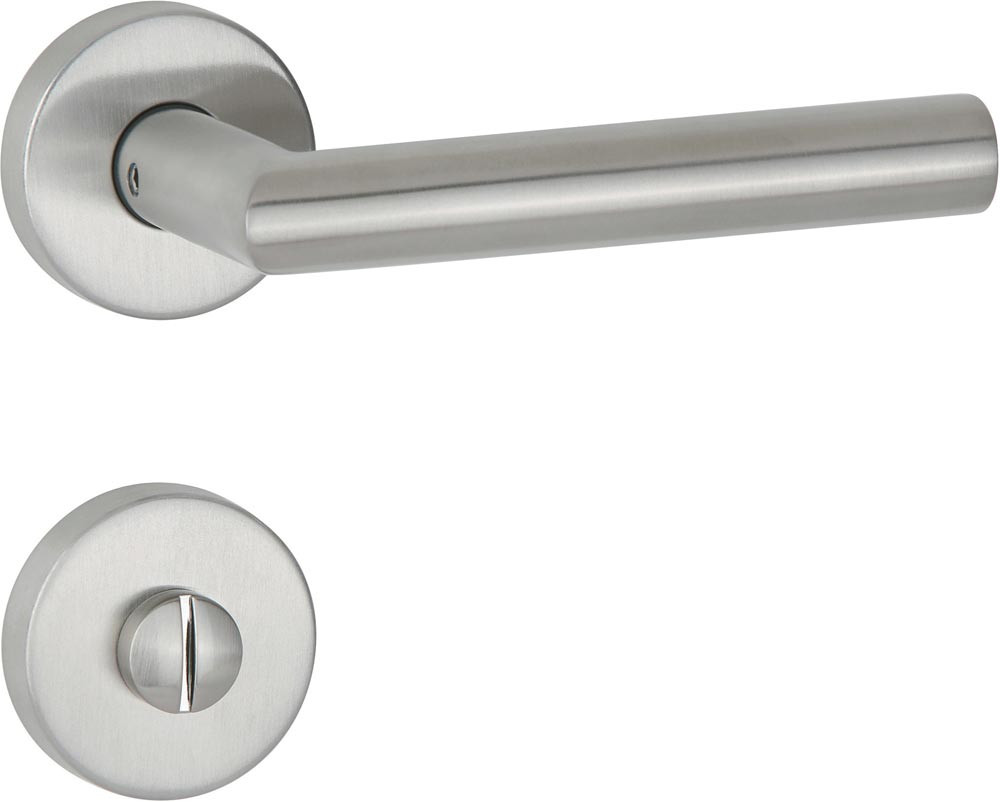 Drückergarnitur Basic 02 Edelstahl 60 Edelstahl matt Gehrung WC DIN links / rechts D/D 30