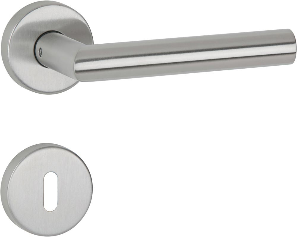 Drückergarnitur Basic 02 Edelstahl 60 Edelstahl matt Gehrung DIN links / rechts D/D 30 E6466199