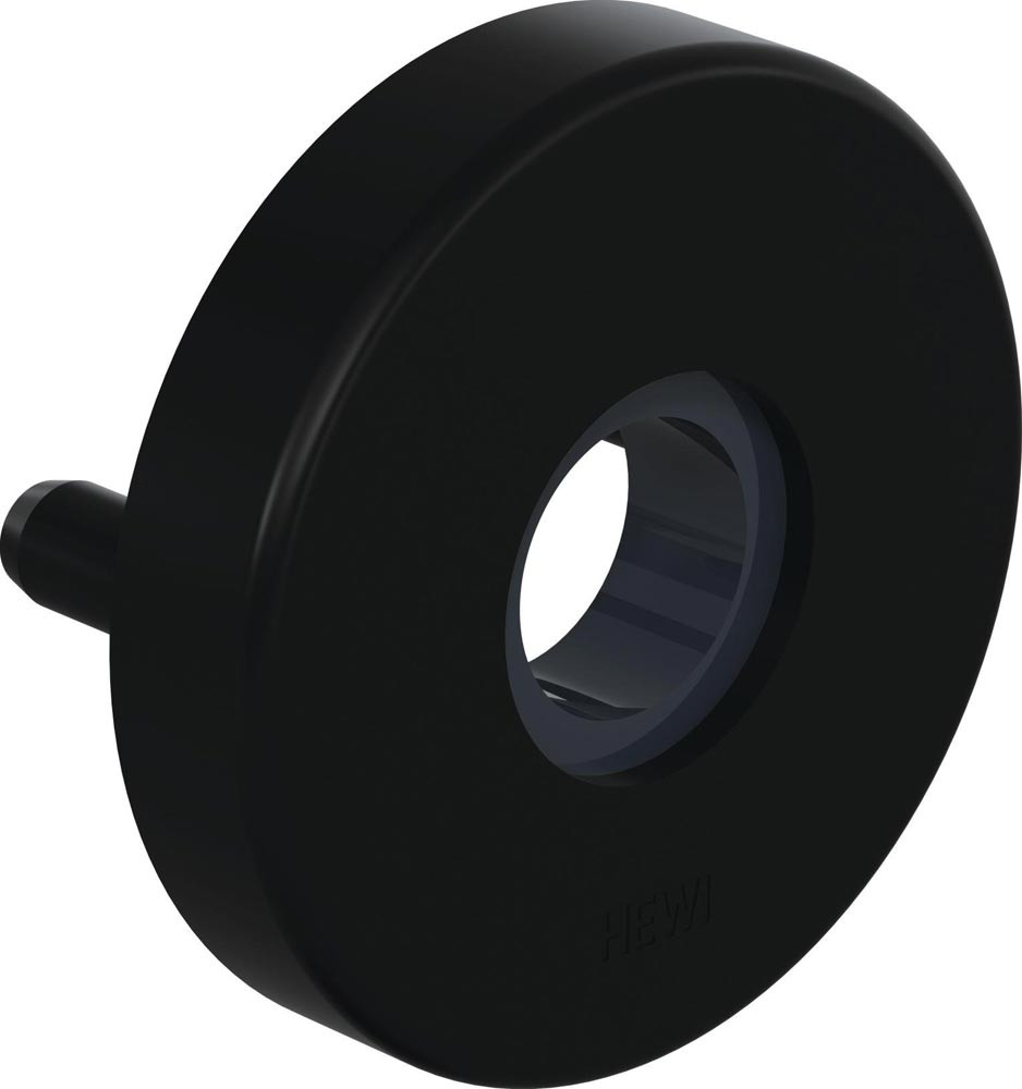 in R-Technik aus mattem Polyamid · für Drückerhalsdurchmesser 21,3 mm · Rosettenunterkonstruktion in Kunststoff-Edelstahlverbundbau · Rosetten-Abdeck-Kappe, rund, Durchmesser 55 mm, 10,5 mm hoch, 1,5 mm Wandstärke · Lieferung inkl. Schrauben