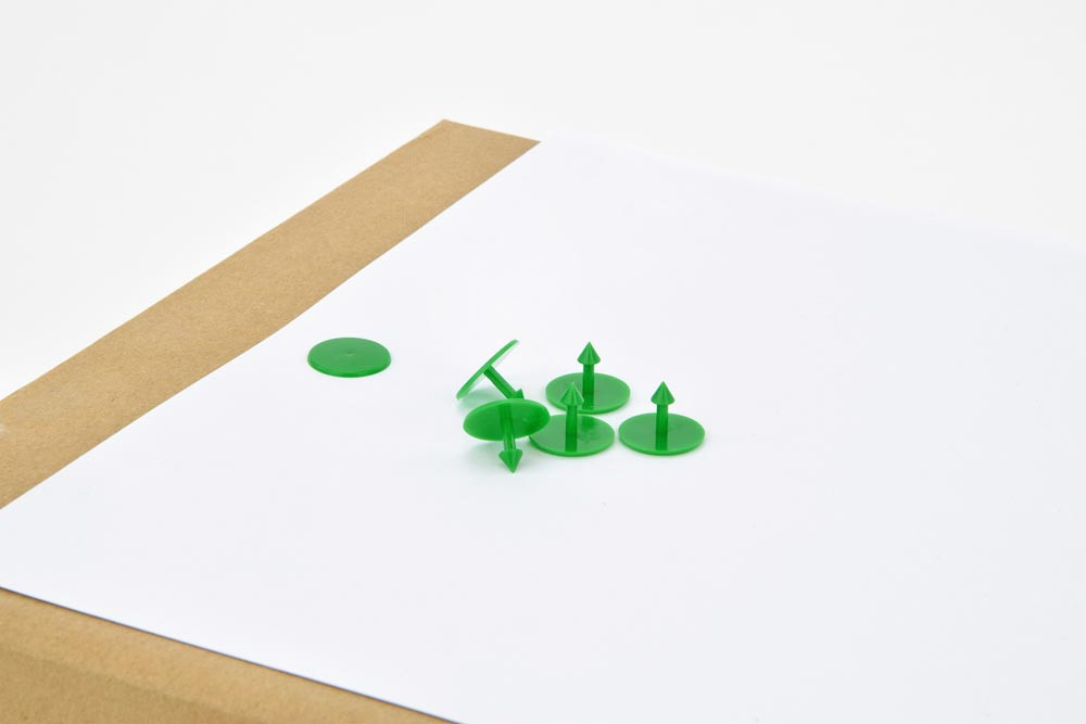 · Für die Befestigung an Kartons, Schrumpffolien und ähnlichen Verpackungen sind Durchsteckhalter hervorragend geeignet · Aus schlagfestem Kunststoff und für den mehrmaligen Gebrauch geeignet· Stoß- und schlagfest, witterungsbeständig · Farbe grün · VE 10000 Stück