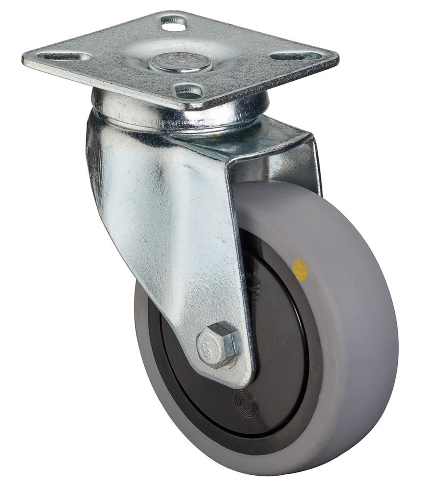 ESD-Apparaterolle, Lenkrolle, Gummi thermoplastisch grau, Durchm. 80 mm, Traglast 80 kg, Kugellager, Anschraubplatte