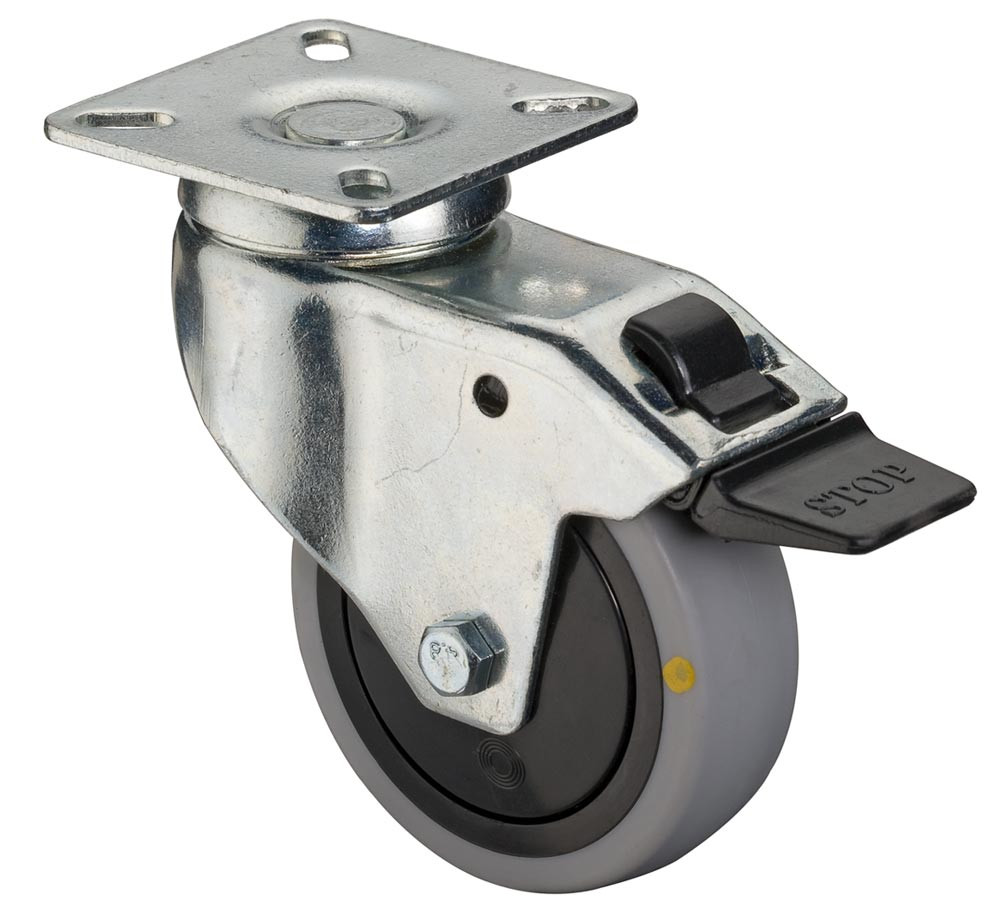 ESD-Apparaterolle, Lenkrolle m. Festst., Gummi thermoplastisch grau, Durchm. 80 mm, Traglast 80 kg, Kugellager, Anschraubplatte