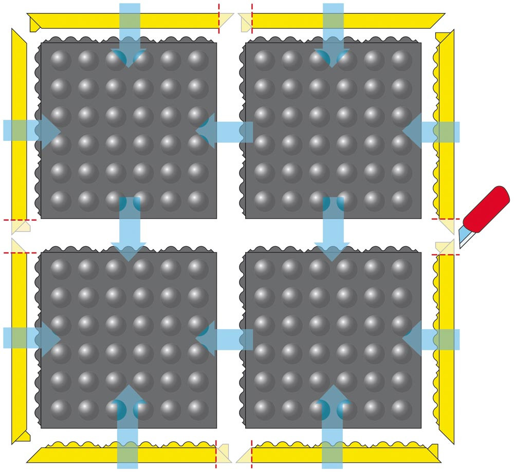 Eckverbindung für Arbeitsplatz-Fliese mit Verbindungsnoppen, Farbe gelb, LxB 1000x60 mm E822917