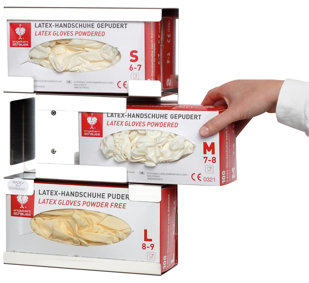 Edelstahl Halterung, 1-fach für Handschuhboxen, geschlossen, 270x140x75 mm, inkl. Montagematerial E6010768