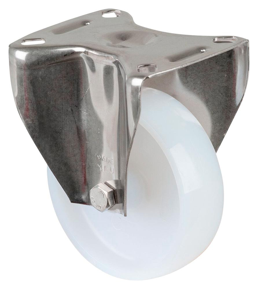 Edelstahl-Transportgeräte-Lenkrolle, Kunststoff weiß, Durchm. 100 mm, Traglast 130 kg, Gleitlager, Anschraubplatte E1617970