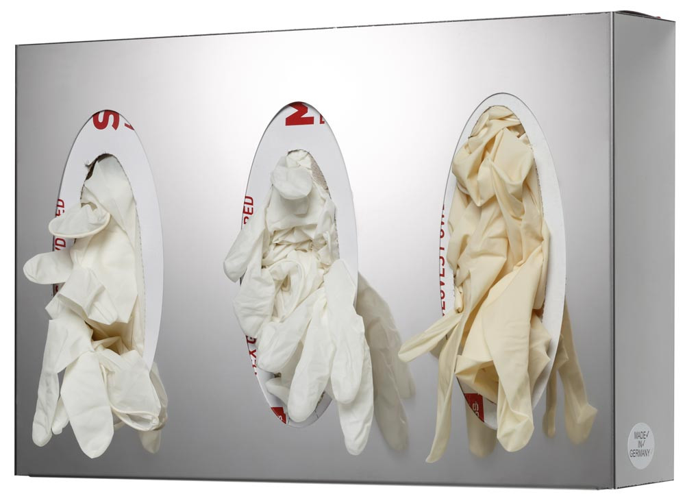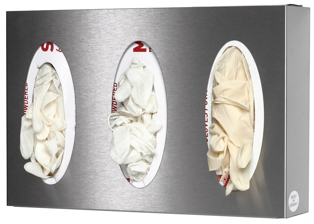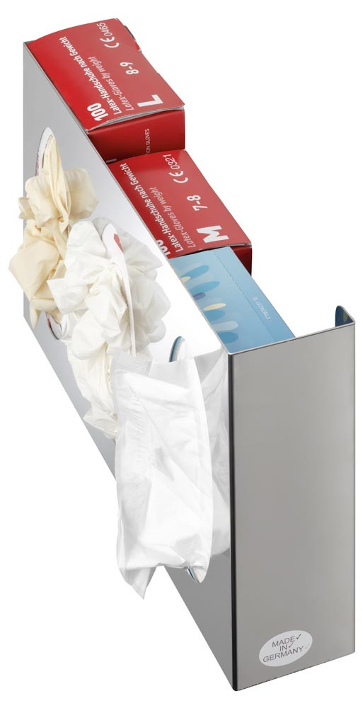 Edelstahl Wandspender, 3-fach für Handschuhboxen, geschlossen, 250x380x80 mm, inkl. Befestigungsmaterial