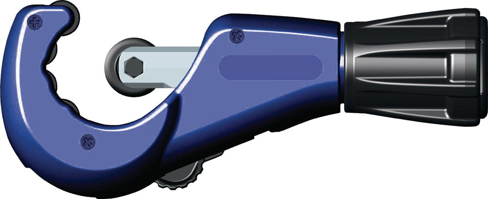 für dünnwandige Metallrohre, speziell zum exakten Schneiden von Edelstahlrohren · Körper aus Magnesium · Schlitten und Drehknauf aus Zink-Druckguss · mit stahlgelagerter Vorschub-Schnellspindel · 4 nadelgelagerte Führungsrollen aus INOX-Stahl · nadelgelagertes Schneidrädchen mit spezieller Schneidgeometrie für V2A/ INOX-Rohre · mit ausziehbarer NOGA-Entgrater-Klinge · Schneidrad aus DIN 100Cr6-Stahl, schwarz brüniert, Ø 19 mm · pulverbeschichtet · mit ICS-System · Schneidradwechsel ohne Werkzeug · Ersatzschneidrad im Drehknauf